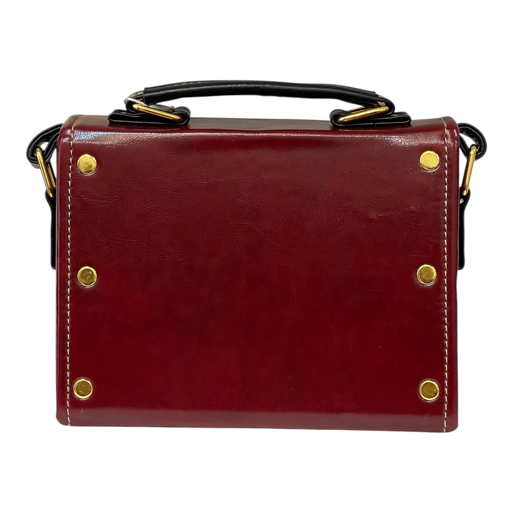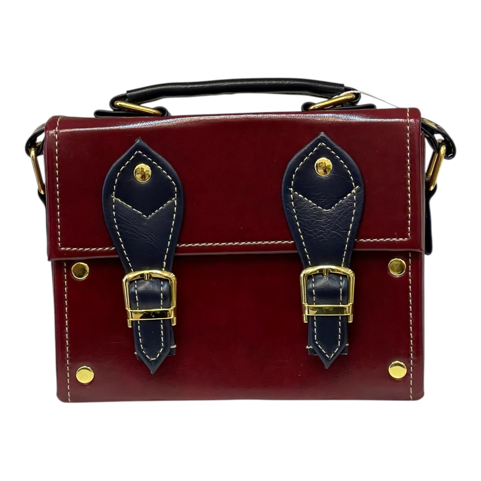 Chic, compact, and beautifully structured — this handmade vegan leather mini satchel in deep burgundy and navy blue combines timeless craftsmanship with modern functionality. The contrast of colors, accented with gold buckles and hardware, gives this piece a refined, vintage-inspired look that’s perfect for everyday style.