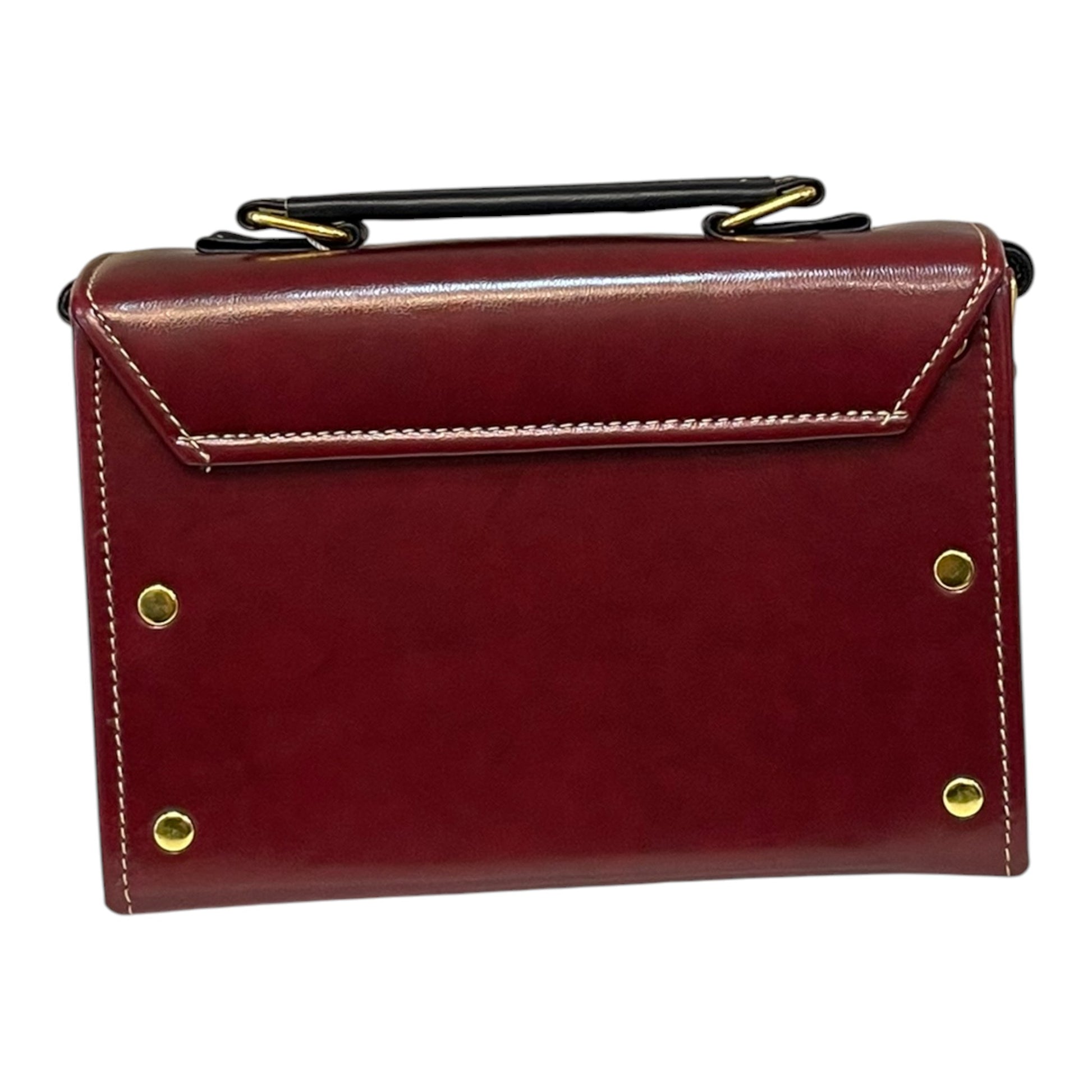 Handmade Vegan Leather Crossbody Bag – Burgundy & Navy with Gold Buckle Accents (21x14x9 cm)