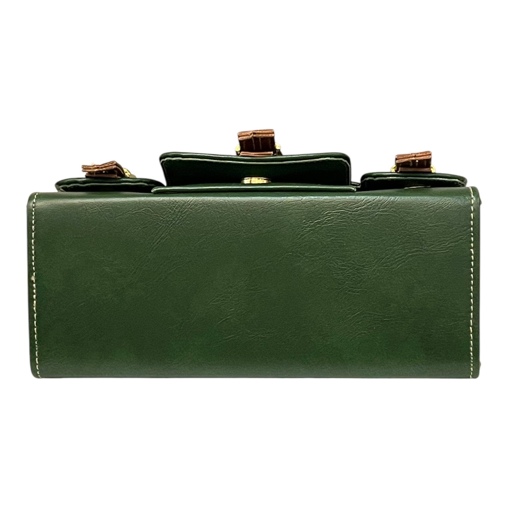 Handmade Green Vegan Leather Satchel Bag | Vintage Crossbody with Front Buckle Design – 23x17x10 cm