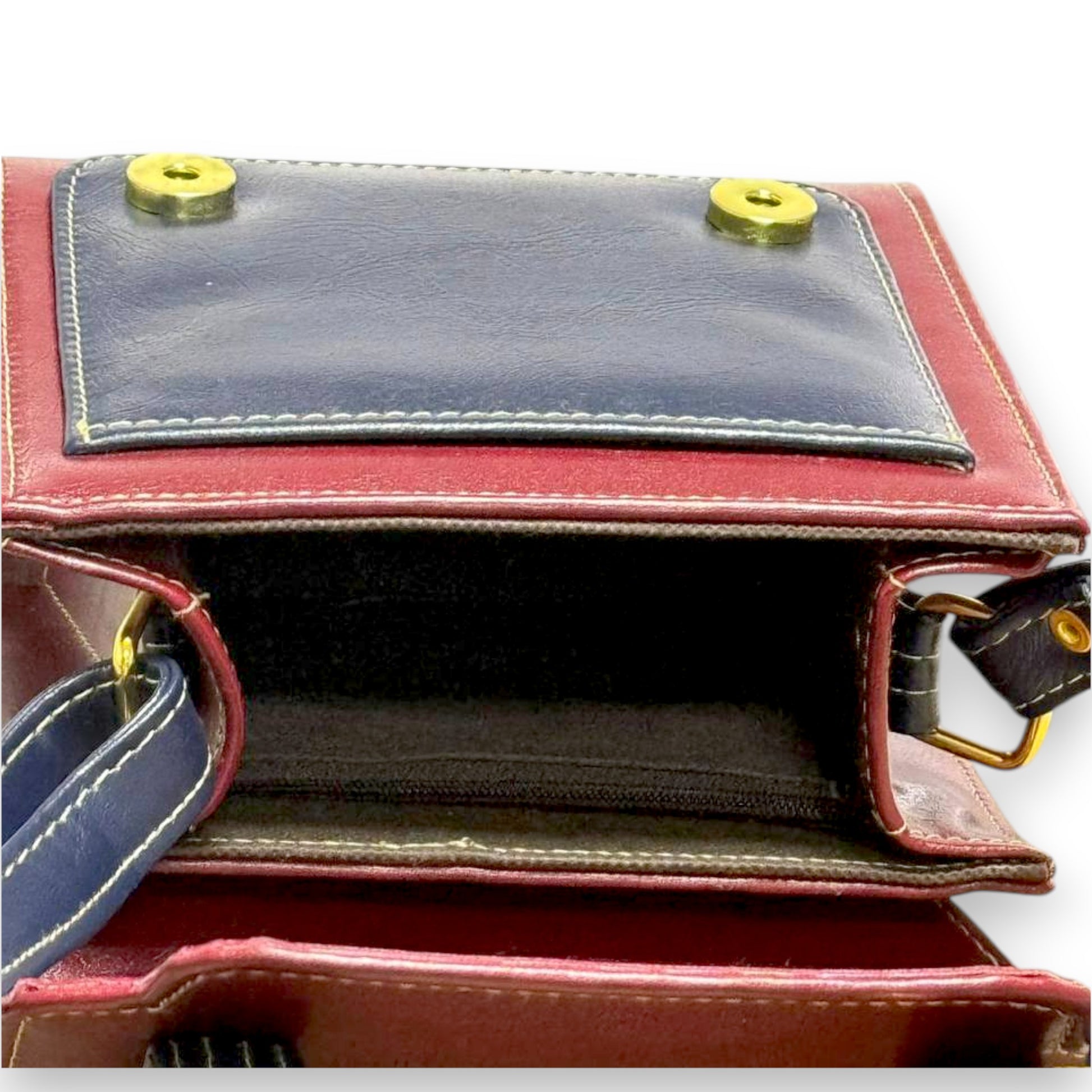 Handmade French-Style Vegan Leather Satchel – burgundy with Black Trim ( 17x 17×9 cm )