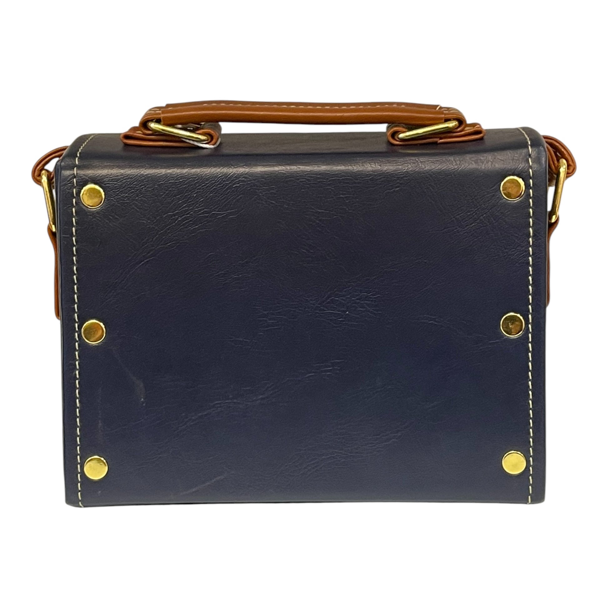 Handmade Vegan Leather Box Bag – Navy Blue & Caramel Brown with Gold Hardware (21x14x9 cm) (Copy)