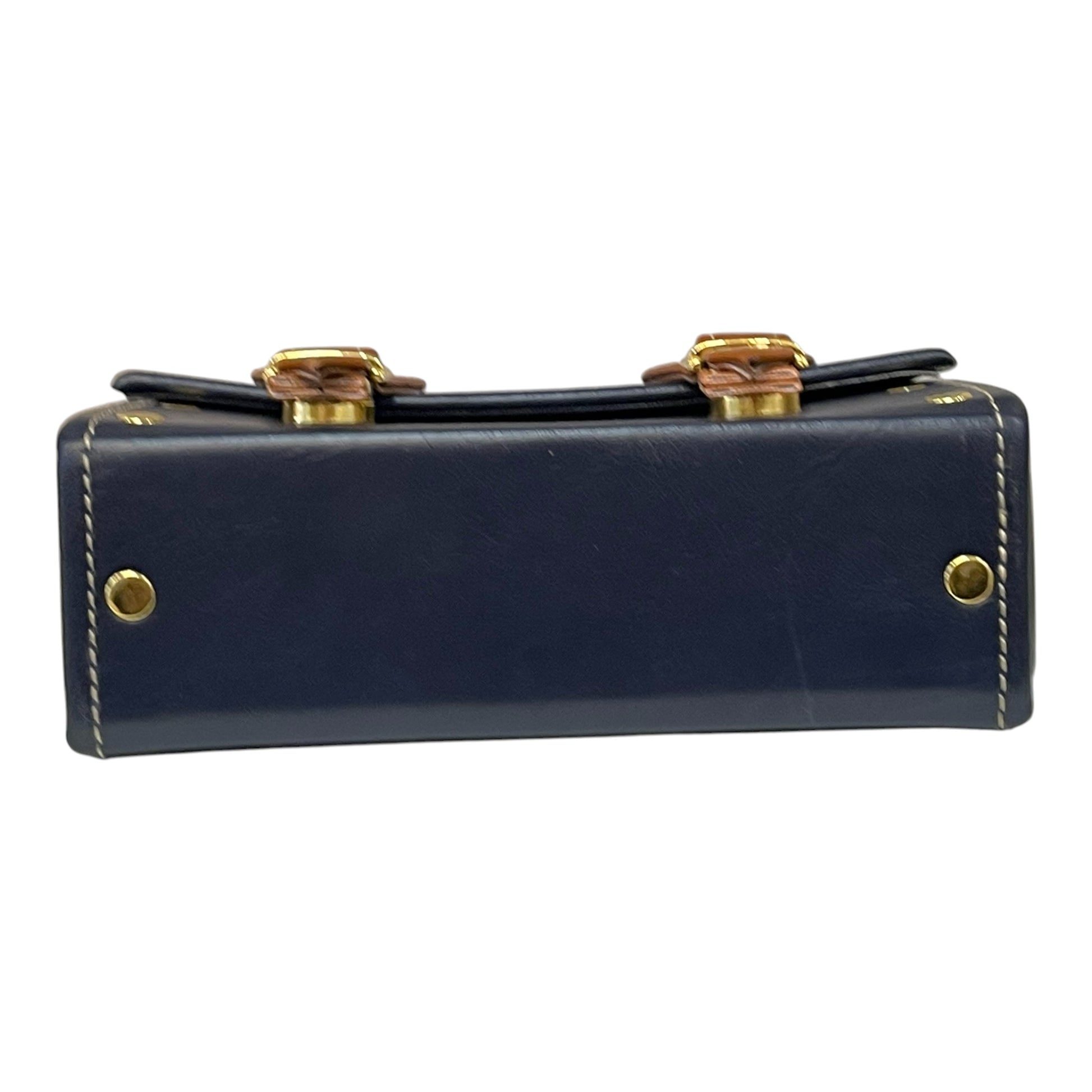 The deep navy tone pairs perfectly with caramel brown straps and polished gold accents, creating a refined contrast that elevates any outfit. With a compact yet practical silhouette, this bag transitions effortlessly from day to night, making it your ideal everyday companion.
