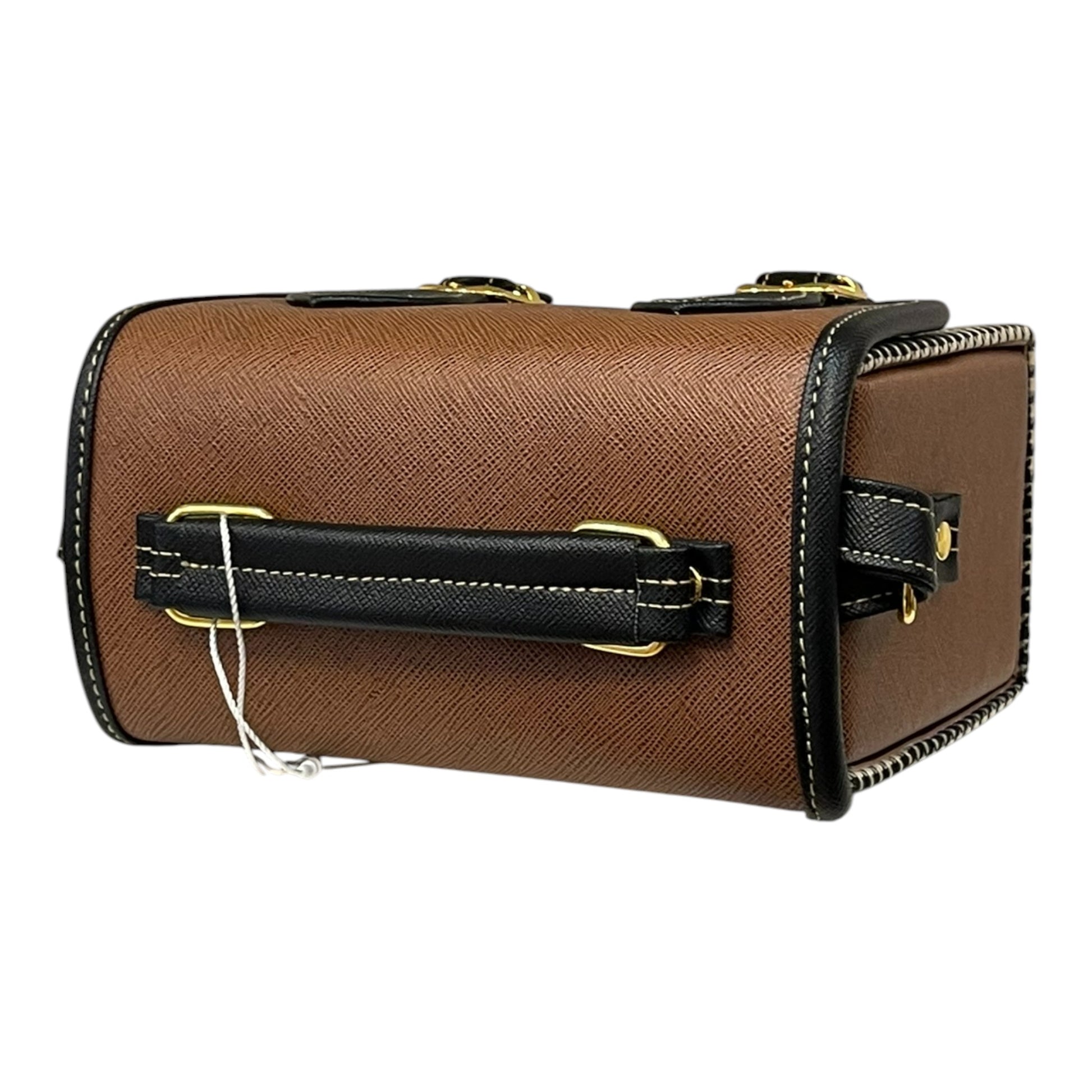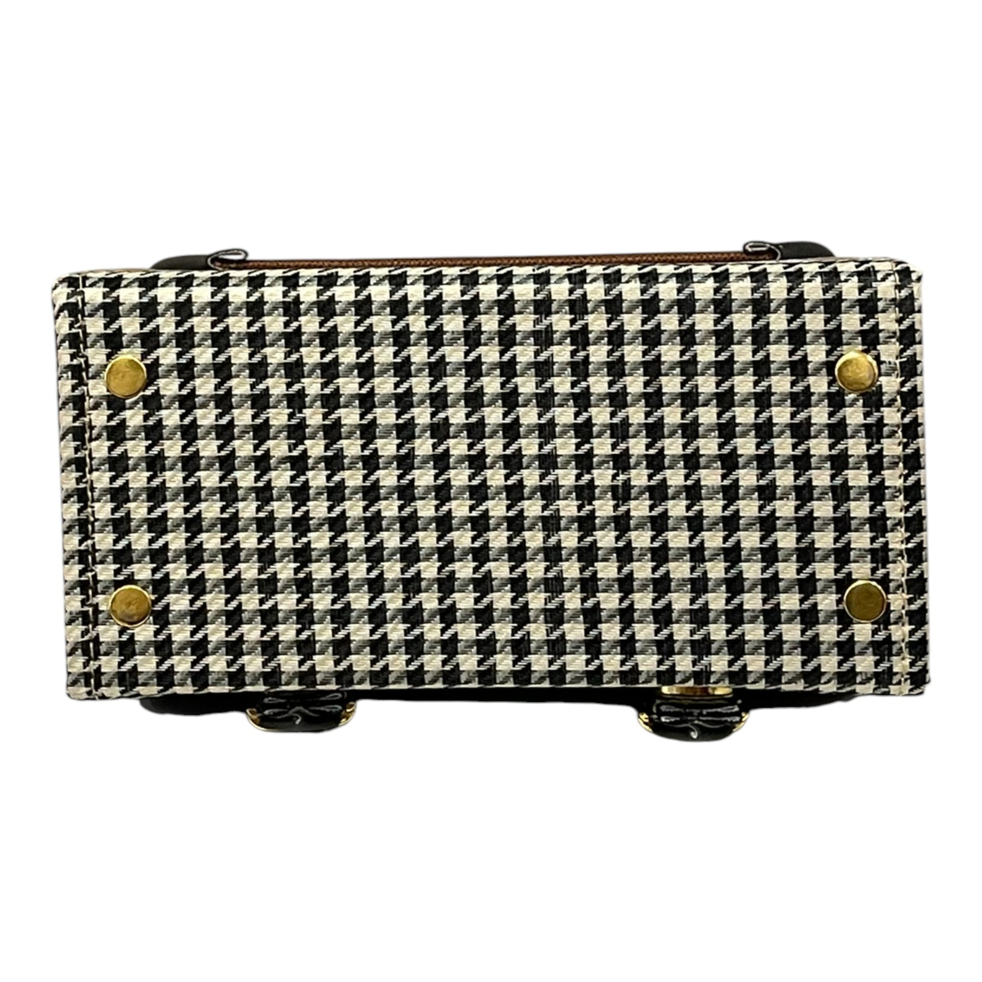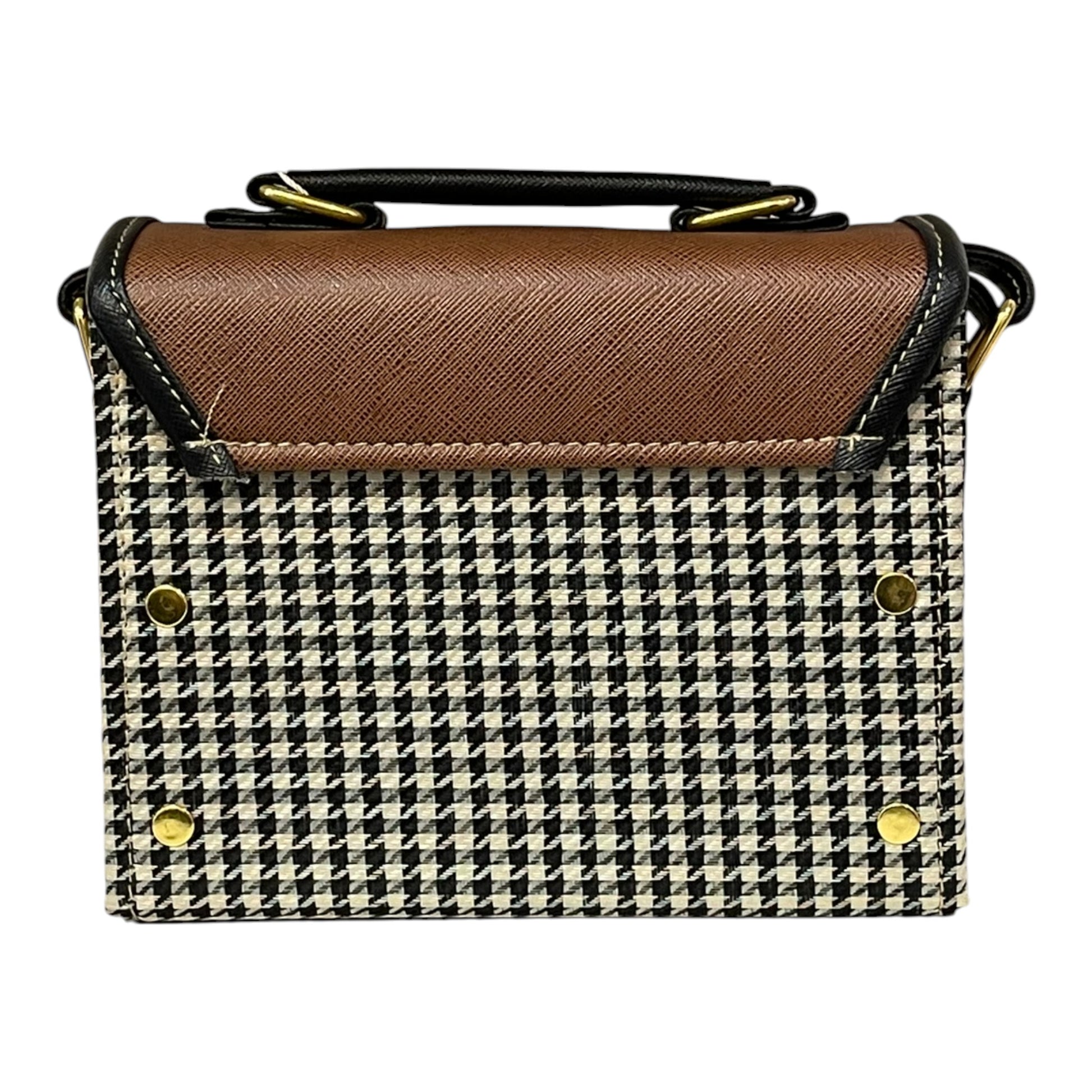 Handmade Vegan Leather Satchel Bag – Brown & Houndstooth, 21x14x9 cm | Vintage Crossbody Purse with Gold Accents