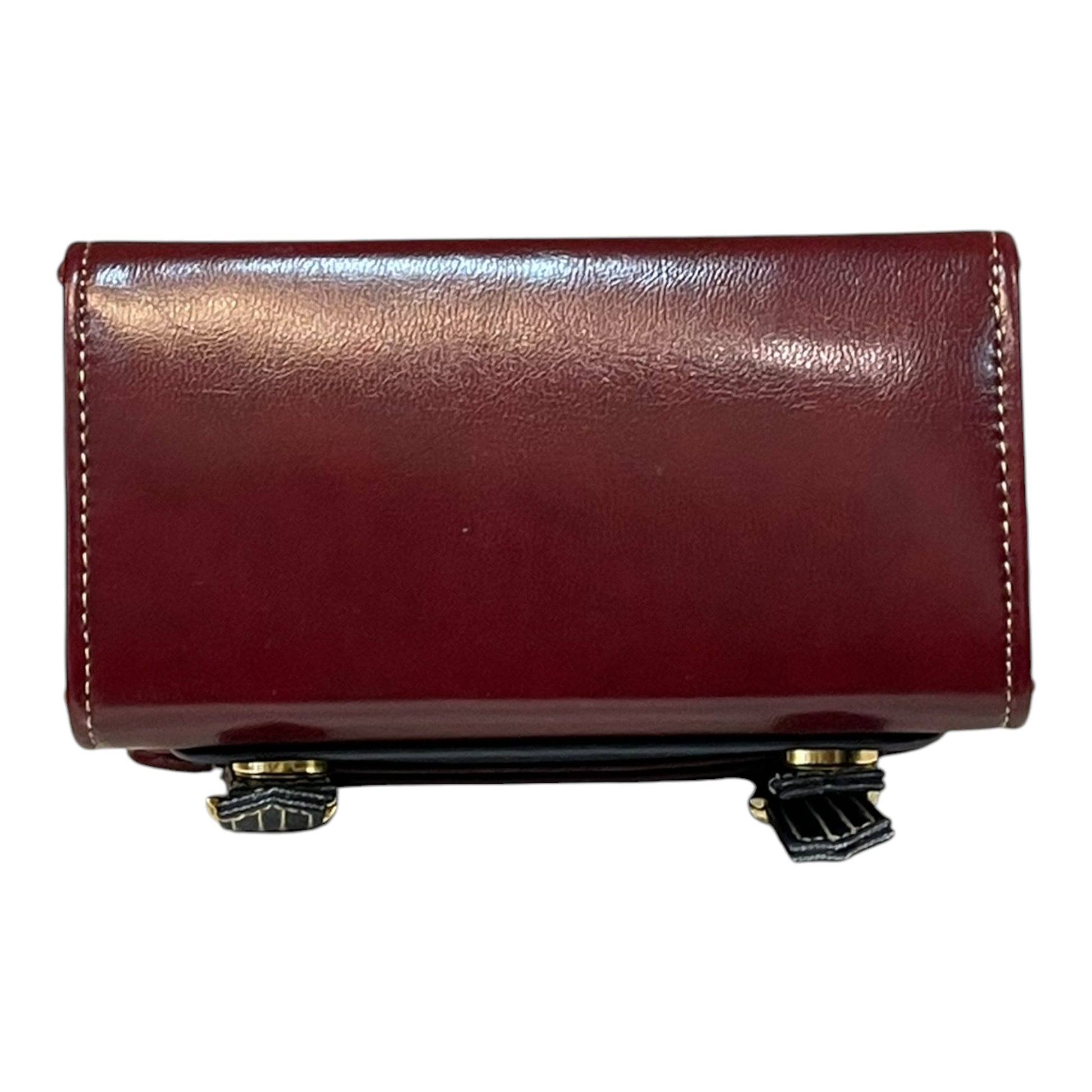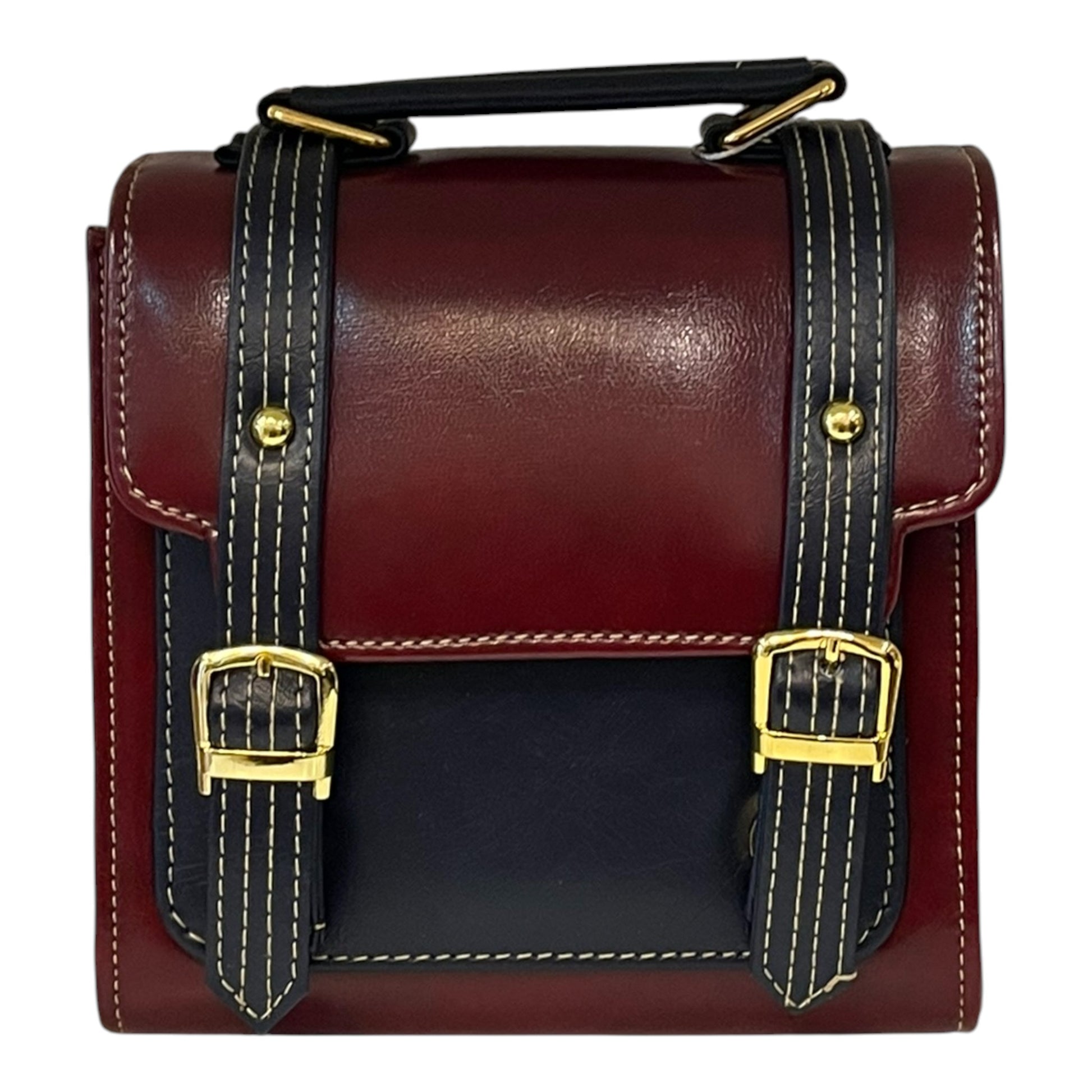 Handmade French Vegan Leather Handbag – Burgundy & Midnight Blue with Gold Buckles (16×16×9 cm)